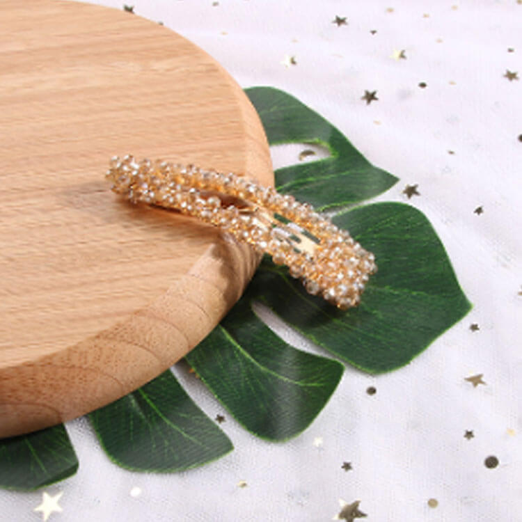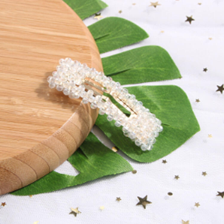 Korea Shiny Crystal Rhinestone Hairpin Geometric Rectangle Waterdrop Pearl Hair Clip